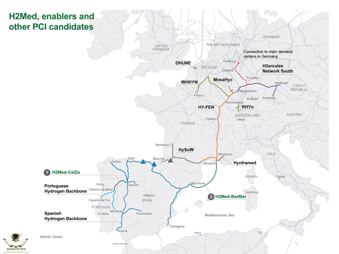 يمكن ملاحظة قرب خط ميدغاز من الشبكة الإسبانية للهيدروجين . ( قرطاجنة - ألمرية)