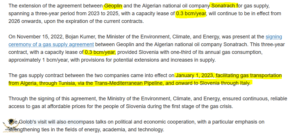 إنشاء أنبوب غالسي و ربط كهربائي مباشر مع إيطاليا أكثر من استراتيجي، يجب التركيز عليهما في المفاوضات مع إيطاليا و أوروبا، اليوم الوزير الأول السلوفيني في الجزائر و أتوقع إتفاقيات لربط أوروبا الشرقية بالغاز الجزائري عبر سلوفينيا