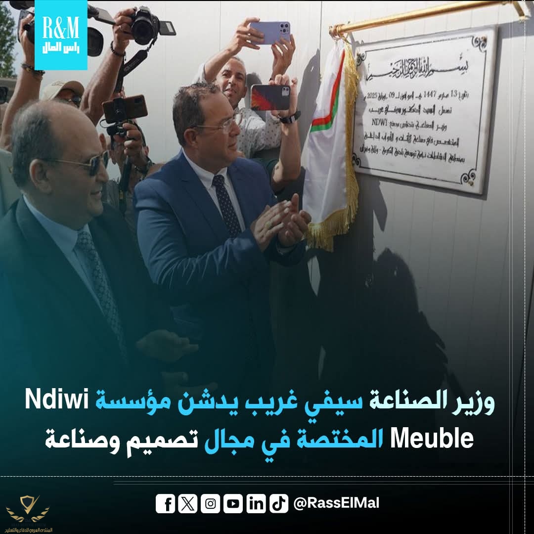 ️ استهلّ وزير الصناعة، السيد سيفي غريب، زيارته إلى ولاية وهران بـتدشين مؤسسة Ndiwi Meuble، الرائدة في مجال تصميم وصناعة الأثاث العصري.