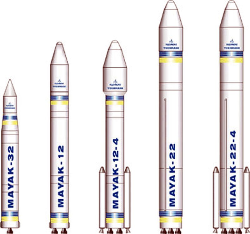 * تعاون في صاروخ من مرحلتين على محركات الأكسجين الكيروسين RD-801 وRD-8 مجمع Маяк ماياك 22 (المنارة 22)