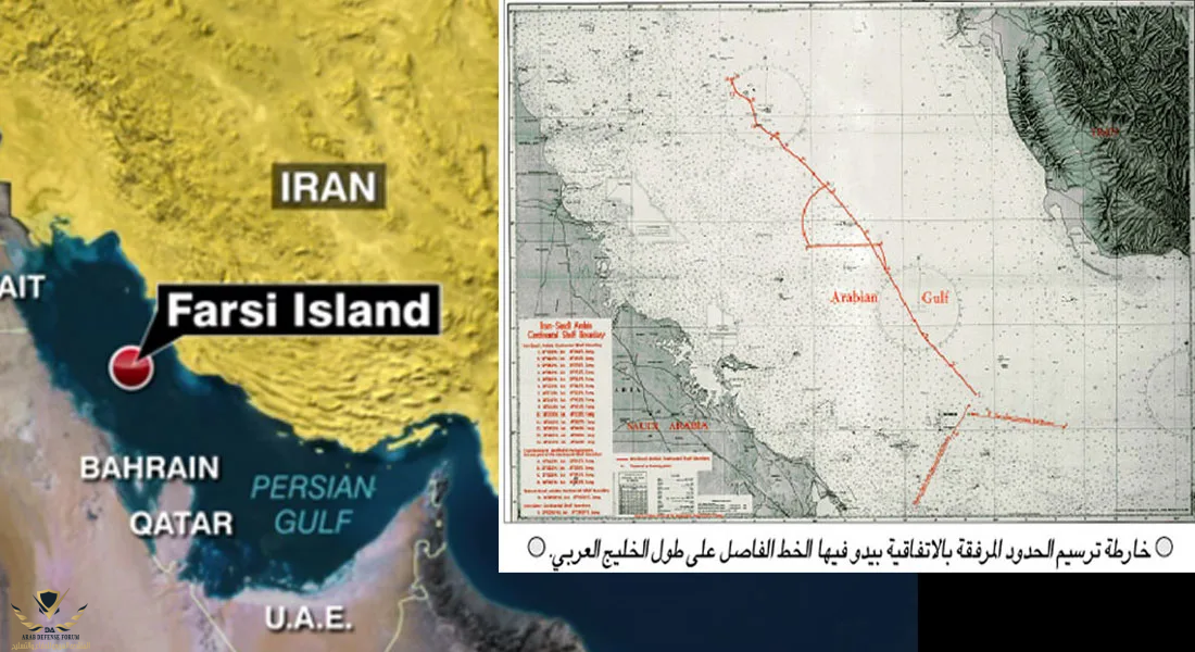 من خط الوسط مفروض حقول سعودية كاملة اسفنديار فروزان فرزادعلماً أن جزيرة خرج الإيرانية ليست بالكامل مقابل الشواطئ السعودية،