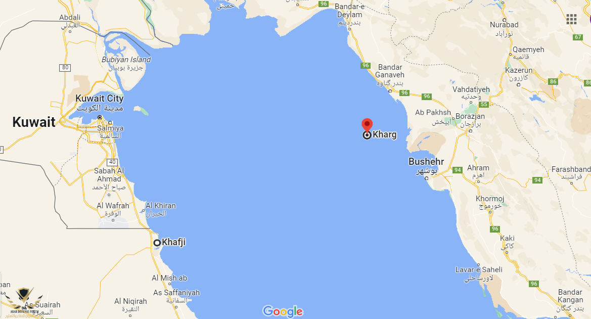 محيط جزيرة خرج الإيرانية بالكامل مقابل الكويت،