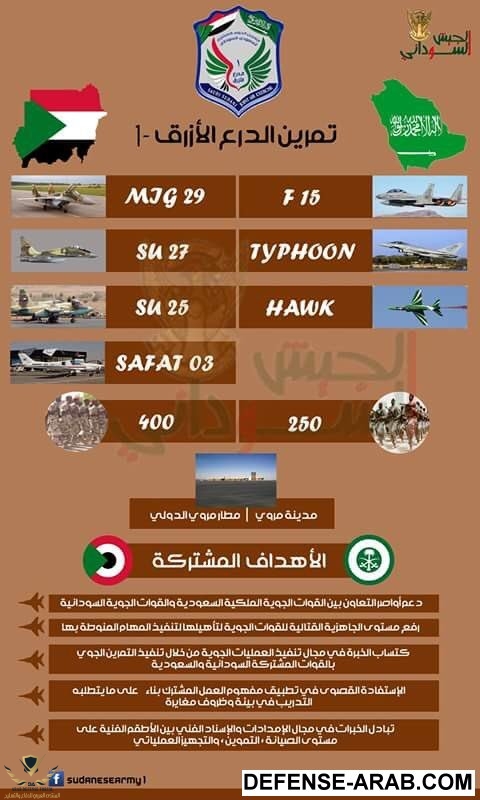 الآن في ثالث شهور هذا العام، يتم الإعلان عن شأن عسكري *يربط بين دول الخليج والسودان* مرة جديدة. ويبدو أن الأمر أكبر، من ناحية المدة الزمنية على الأقل، ومن ناحية المساحات التي ستتم تغطيتها داخل أراضي السيادة السودانية. حيث ستقام تمرينات عسكرية *(جوية)* مشتركة بين القوات الجوية الملكية والقوات الجوية السودانية - قبل مطلع الشهر الجديد - مستهدين بالمقولة الشريفة لنبي الرحمة محمد صلى الله عليه وسلم: "...ألا إنّ القوةَ الرميُ".
