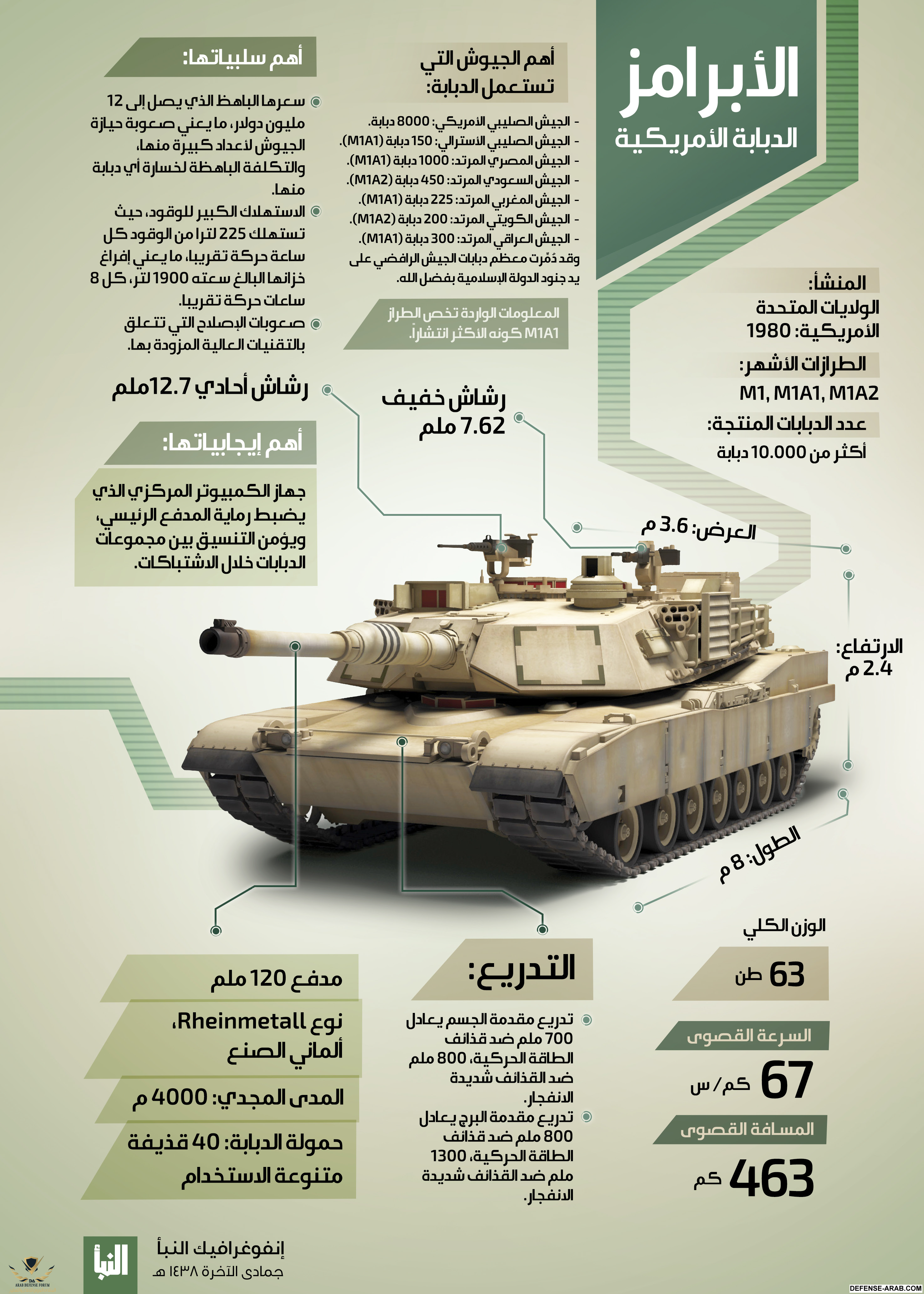 الابرامز لديها حماية ممتازة في مقدمة البرج ولكن الجوانب رقيقة جدا والمسرح الاوروبي غير المسرح العراقي الصحراوي المنبسط تماما