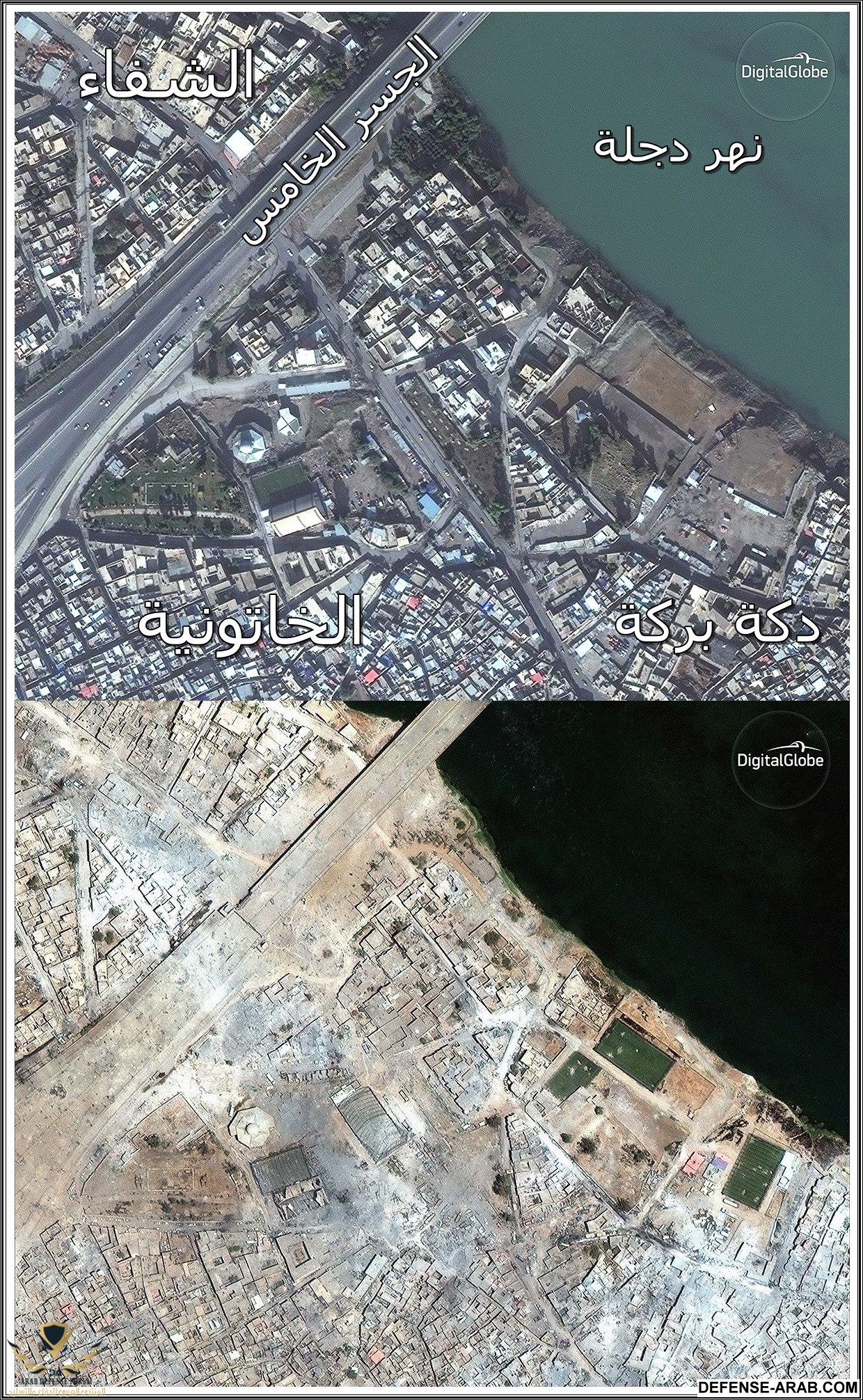 صورة جوية تبين حجم التدمير في الجزء الشمالي من المدينة القديمة في الموصل قرب الجسر الخامس حسب موقع ( Digital Globe )مشاهدة المرفق 82681