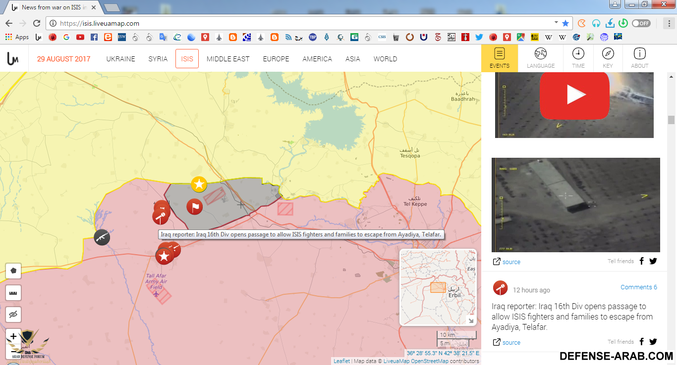معركة العياضية . الفرقة 16 من الجيش العراقي تحكم الطوق على ناحية العياضية وتفتح ممر للسماح لداعش وعوائلهم بالهروب من المدينة . المعلومة والخارطة استنادا الى موقع (isis.liveuamap.com )مشاهدة المرفق 86228
