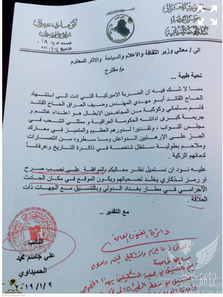 Nabil طاقم الإدارة مـراقــب عـــام إنضم 19 أبريل 2008 المشاركات 30,057 التفاعل 25,000 422 0 12 يناير 2020 #7,229 عميد ركن خليل الطائي المليشيات تستهدف قاعدة بلد الجوية بعدد من صواريخ الكاتيوشا . بعد مقتل قاسم سليماني ، المليشيات في العراق تنفذ أمر سيدها الجديد حسن نصر الله الذي طالبها قبل قليل بمهاجمة القواعد العسكرية التي تتواجد فيها القوات الأمريكية..