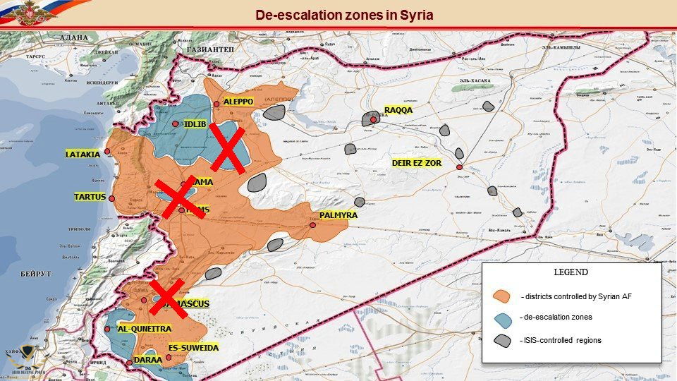 بعد سنة من إعلان 4 مناطق خفض توتر بإتفاق إيراني_تركي_روسي مشترك, تم تسليم 3 منها تقريباً للنظام, شرق إدلب, الغوطة الشرقية, وحمص. وبقي واحدة ونصف.