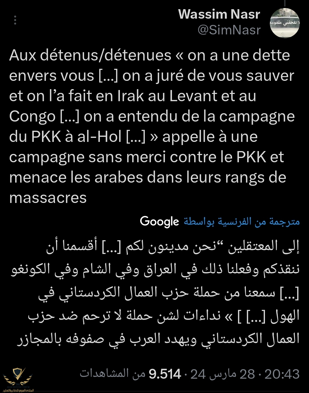 تنظيم الدولة أعلن النفير في مناطق دير الزور والحسكة والرقة لشن أكبر حملة ضد قوات قسد وذلك رداً و انتقاماً على حملة قسد على مخيم الهول جاء في الخطاب عدم إدخار شيئ واستخدام كل شيئ مفخخات عبوات كواتم عمليات انغماسية ... الخ فور سماع الكلمة الصوتية "نشرت ليلة أمس "