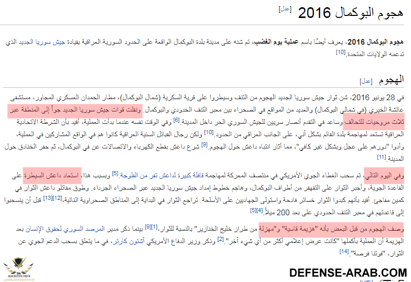 جناب عاشق اسبانيا اولا هدأ اعصابك وثانيا الخريطة فقط لتحديد منطقة التنف وثالثا يبدو انك تخلط بين انزال اختطاف وزير مالية داعش وبين انزال البوكمال اما خبر انشقاق مجموعات من الجيش الحر فانا لم اذكرذلك وانت ذكرت المغاوير . اما قولك لم يحدث انزال في البوكمال يبدو انك بعيد عن الاحداث في سوريا ولكي تتاكد ادخل الويكيبيديا وشوف هجوم البوكمال وهذه صوره منه .مقال خاطئ وخريطه كذلك خاطئه