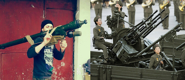 North Korean HT-16PGJ MANPADS in Lattakia, 26th of November 2015. Right: The same MANPADS seen in a North Korean military parade.