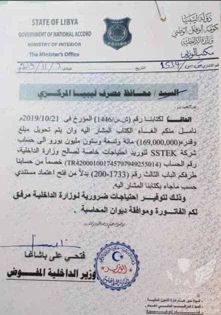 مئة و سبعين مليون دينار ليبيوسائق مسربة تفيد تحويل ١٧٠ مليون دولار لشركة sstek للصناعات الدفاعية التركية من البنك المركزي الليبي