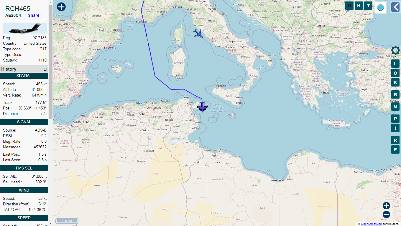 طائرة شحن أمريكية تتجه نحو غرب ليبيا