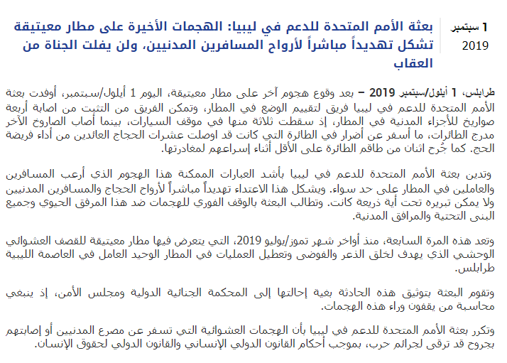 اذا علمت الامم المتحدة ان الميليشات هي اللي تقف خلف قصف المطار ستدعها تفلت من العقاب