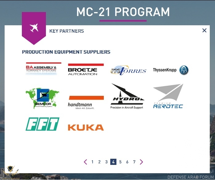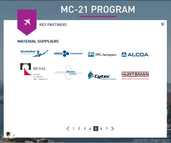 يمكن ملاحظة الشركاء حيث يظهر الكثير من الشركات الغربية واعتماد على شركات علم المواد الغربية بشكل واضح وكذلك شركات المعدات حيث تغيب الشركات الروسية!"After new US restrictions on trade with Russian companies, including with Joint Stock Company AeroComposit and Joint Stock Company ODK Aviadvigatel, came into force in September 2018, serious preconditions were created for putting pressure on the MC-21 program," Borisov said.