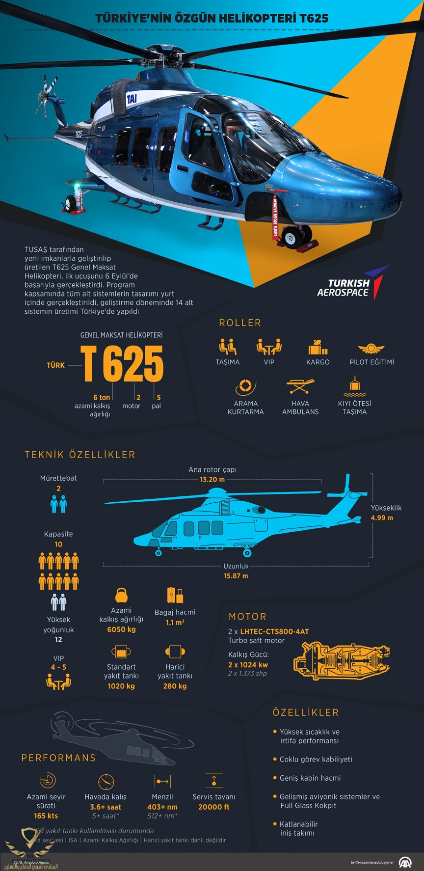 أعلنت وزارة الدفاع التركية أن مروحية "تي - 625" الخدمية والتي تزن 5 أطنان سوف تقوم بأول جولة طيران لها في عام 2018.