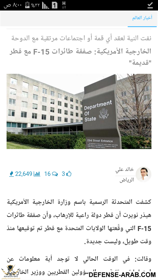 نعم .. لأن الـ F-15 ستمثّل نقلة نوعية لقطر .. ولا تنسى أن السعر المرتفع له أسبابه .. فأنت تقوم بإدخال سلاح جديد كلياً في القوات المسلحة يحتاج لوقت وجهد حتى يتم استعيابه و تشغيله من ناحية التدريب و النواحي اللوجستية و التسليحية .. السعر أراه طبيعي لأن قطر أرادت تضخيم سلاحها الجوي نوعاً و كماً في قفزة واحدة .. الذي بالأساس كان عبارة عن سلاح جو متواضع عماده سرب واحد من الـ Mirage-2000