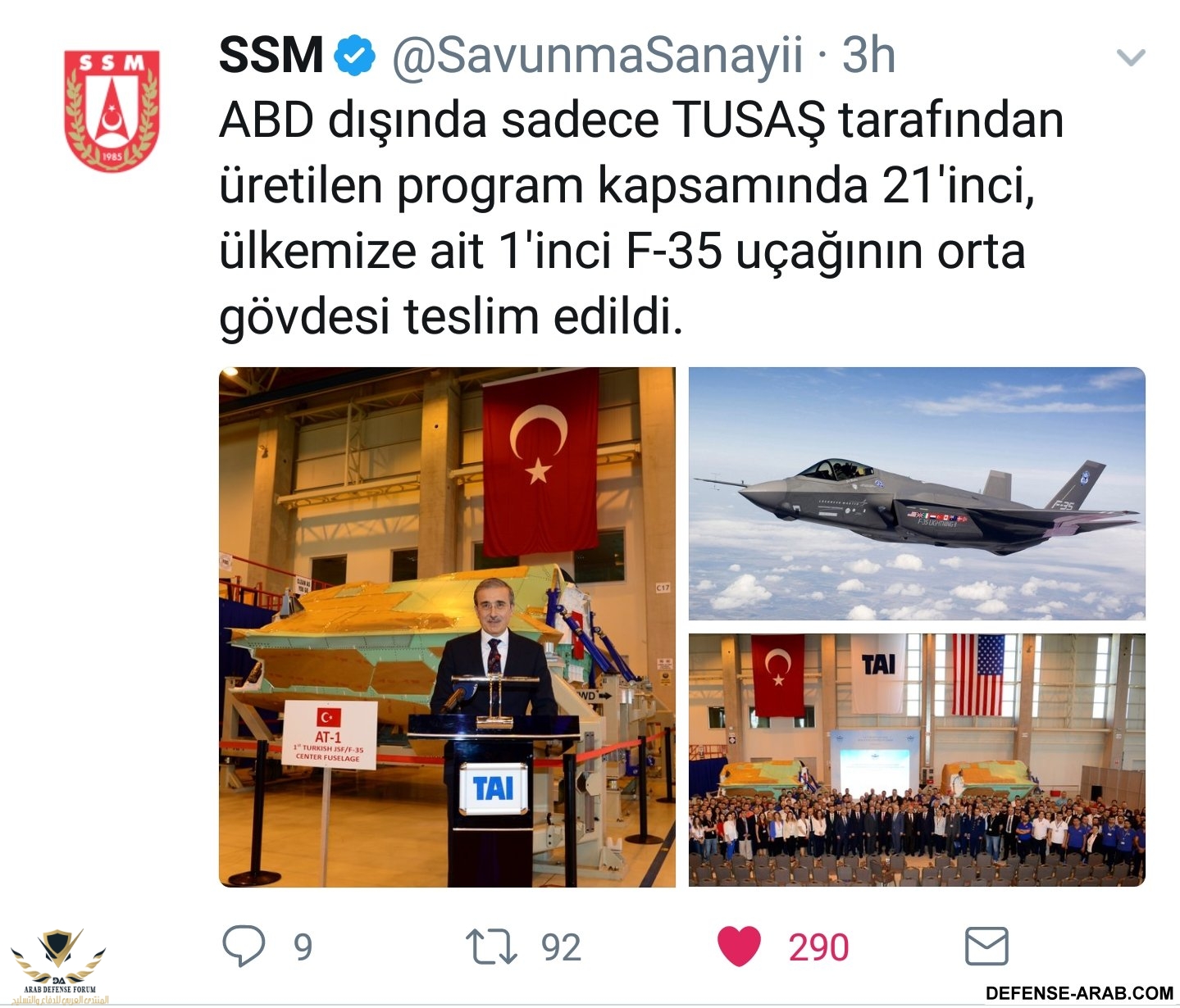 في اطار برنماج تصنيع طائرة الجيل الخامس JSF F-35 الذي تعد تركيا شريك أساسي فيه ، شركة #TAI التركية للصناعات الجوفضائية تنتهي من تصنيع اول قطعتين من الجزء الأوسط من بدن الطائرة .
