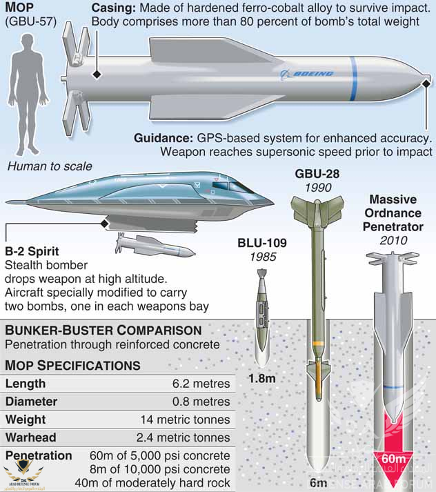 بس MOP GBU-57 قدرة اختراقها 60 قدم