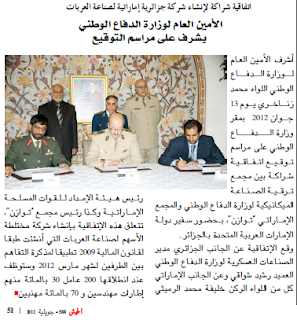 تم توقيع عقود تأسيس الشركة الجزائرية الامارتية هذه يوم الاربعاء 13 جوان 2012 بمقر وزارة الدفاع الوطني MDN الجزائرية