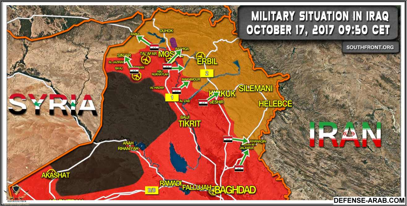 خارطة تبين تحركات القوات العراقية خلال ال 72 ساعاعة الماضية على جهة طولها اكثر من 1000 كم