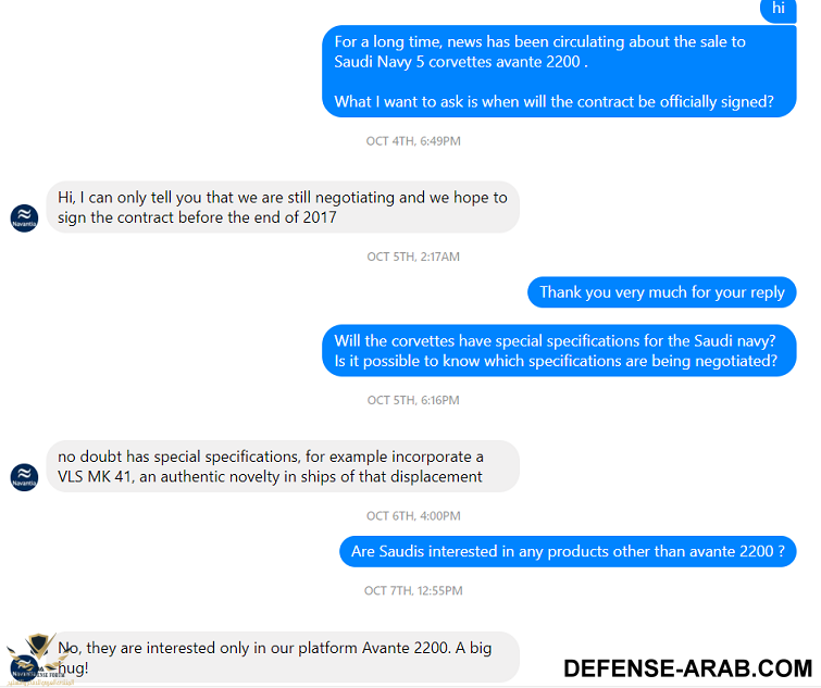اعلان بيع 5 كورفيتات من شركة نافانتيا للبحرية السعودية في الاسابيع القادمة
