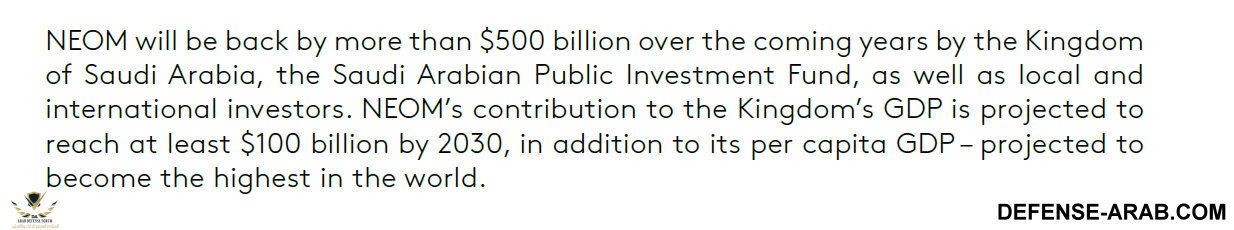 *سيساهم المشروع بمدخول 100 مليار دولار على الاقل إضافة للناتج المحلي السعودي GDP بحلول 2030