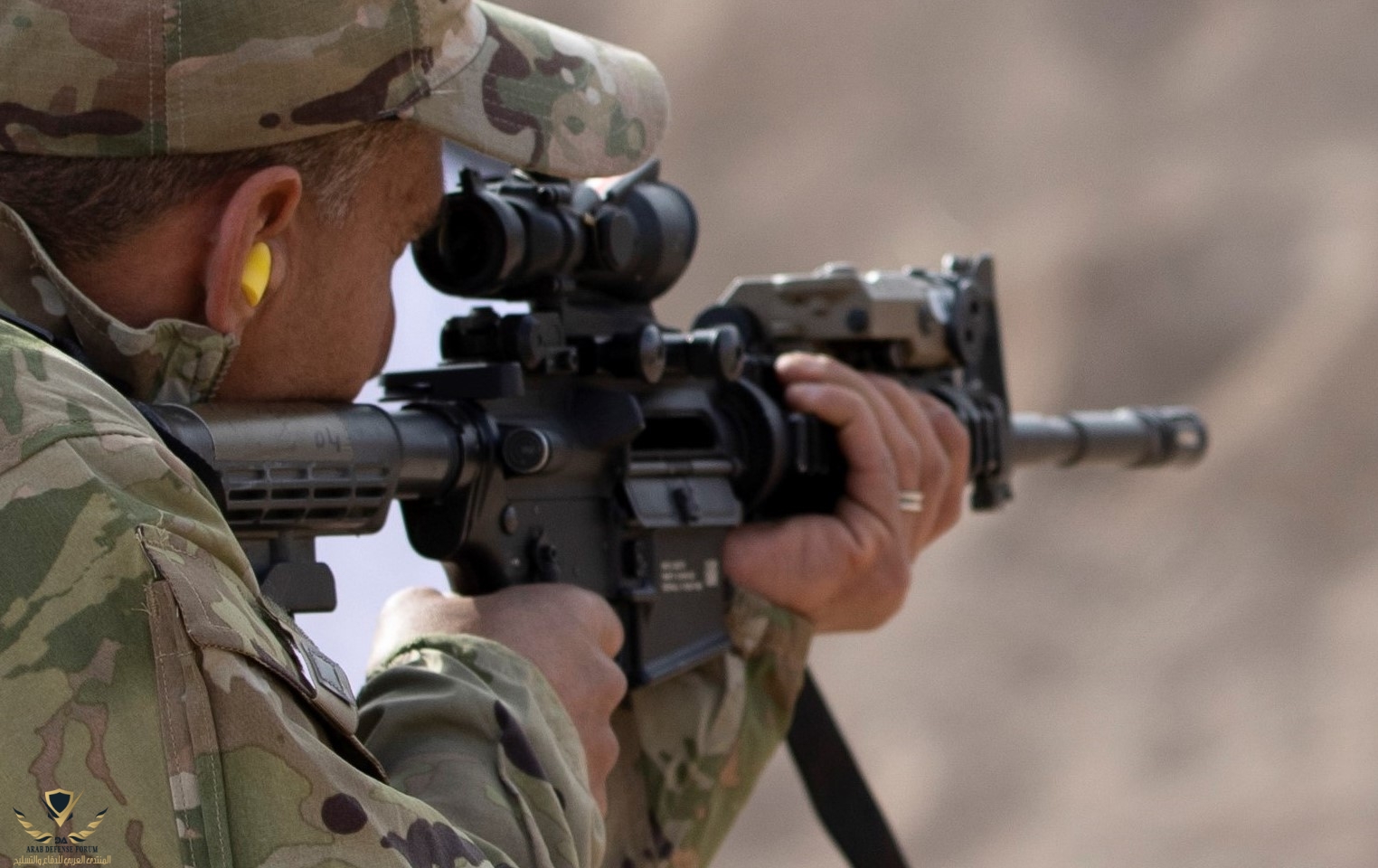 Tunisian security forces practice close-quarters battle at the life-fire shoot house on the range with their U.S. counterparts, 3rd Security Forces Group, on Feb. 3, 2022, White Sands Missile Range, New Mexico. The Tunisians are participating in a joint force exercise for validation in infantry tactics. (U.S. Army National Guard photo by Sgt. Kristina Kranz)