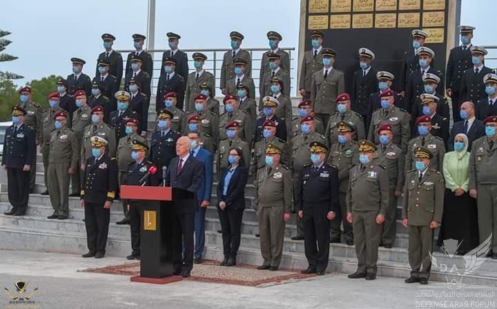وتوجه رئيس الجمهورية بكلمة ثمن فيها نجاحات المؤسسة العسكرية والمجهودات التي ما انفكت تبذلها في مختلف المجالات لدعم السلط المدنية سواء في تأمين الامتحانات أو الانتخابات أو كذلك في المجال الصحي حيث تولت مؤخرا تركيز مستشفى ميداني في قبلي في وقت قياسي. وثمن دور الأكاديمية العسكرية على وجه الخصوص التي تعتبر من مفاخر تونس حيث ساهمت ولا تزال في تكوين أجيال من العسكريين المدافعين عن الوطن المتميزين بالانضباط والإرادة والعزيمة.
