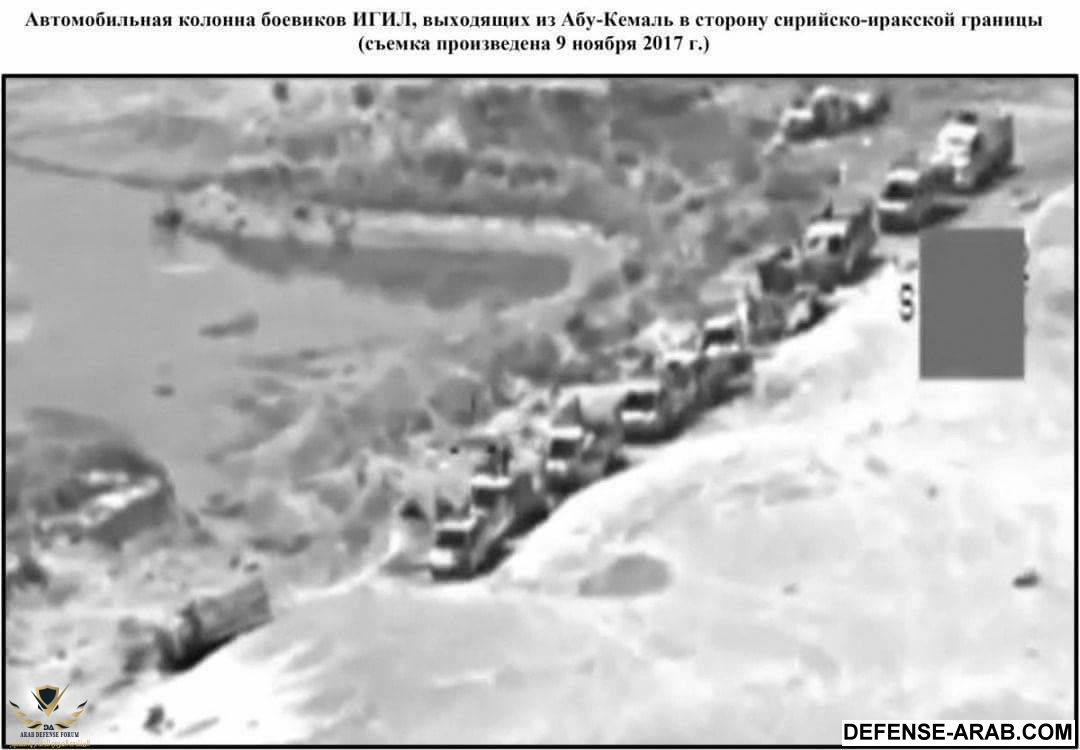 نشرت وزارة الدفاع الروسية مجموعة من الصور تظهر تحرك مسلحي داعش خلال الانسحاب من مدينة البوكمال بمحافظة دير الزور.