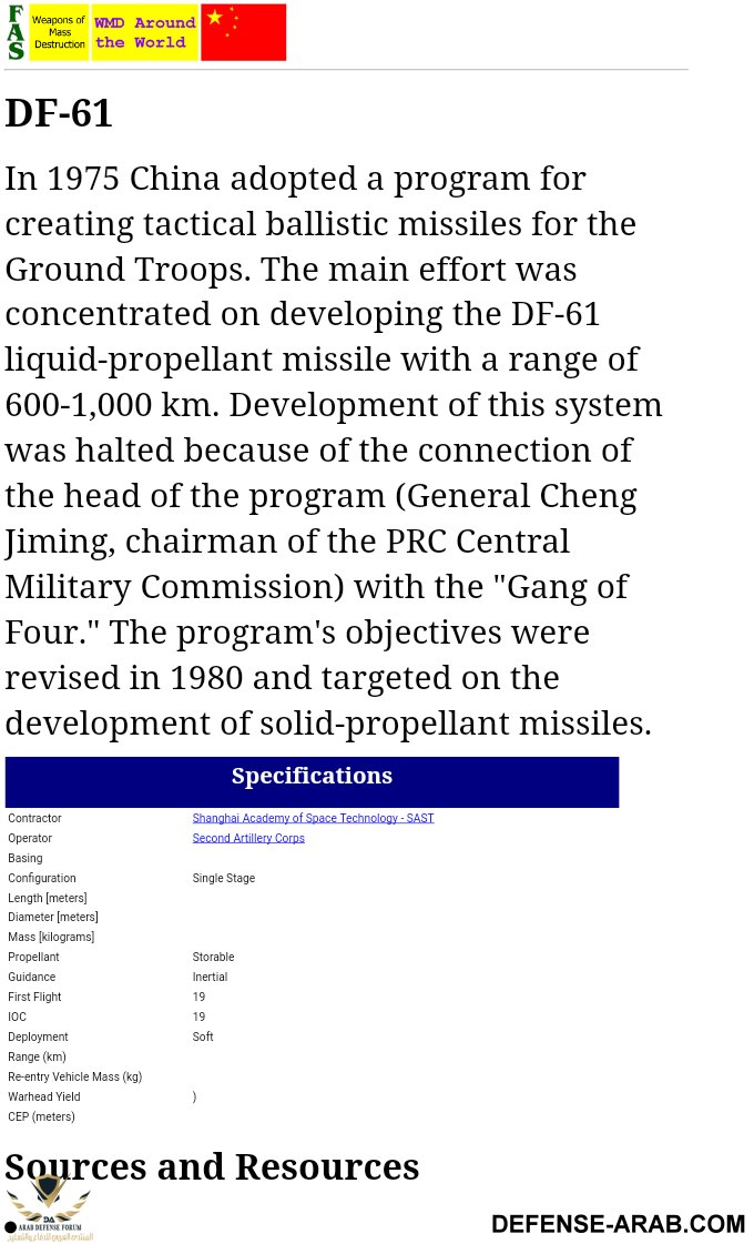 اتصلت بصديقي وزير الدفاع الصيني سألته عن صاروخ DF-61 قال ماعمره سمع عن صاروخ بهذا الاسم ، ممكن تنورنا عن هذا الصاروخ؟؟!