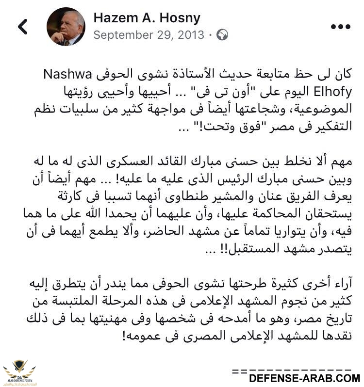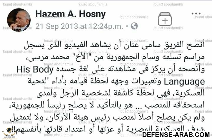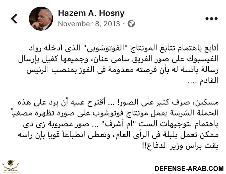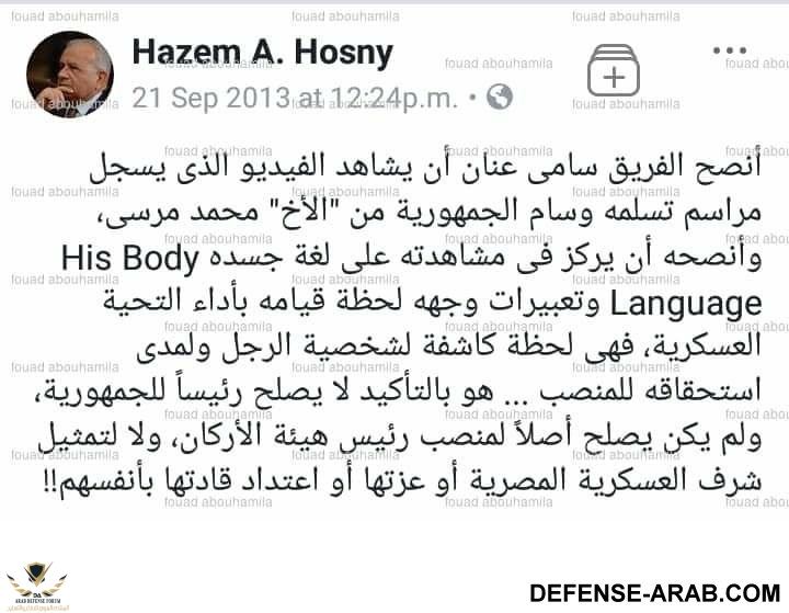 بوست في 2013 لحازم حسني المتحدث الرسمي لحمله سامى عنان الانتخابيه