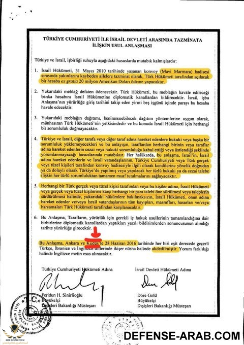ألرئيس أردوغان @RT_Erdogan يعترف بأورشليم القدس عاصمة إسرائيل إتفاق إعادة العلاقات الدبلوماسية بين #اسرائیل و #تركيا "الاتفاق يوقع بين إسرائيل وتركيا 28/6/2016، في أنقرة وأورشليم القدس باللغات التركية العبرية الانجليزية". محللون: يثبت اعتراف تركيا بأورشليم القدس عاصمة إسرائيل.