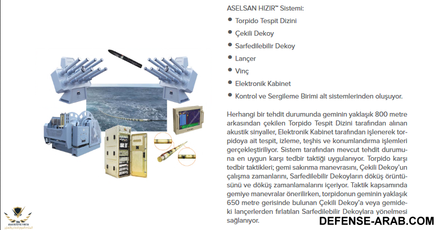 سيتم استبدال نظام SEA SENTOR™ في المستقبل من قبل النظام الأكثر تقدما Aselsan HIZIRSSTD. HIZIR نظام متقدم مضاد للطوربيدات.