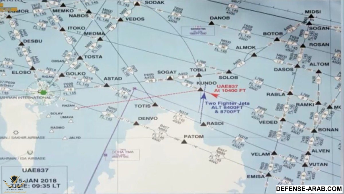 اعتراض المقاتلتين القطريتين للطائرة الإماراتية كانت قريبة جداً من مطار البحرين الدولي في جزيرة المحرق،