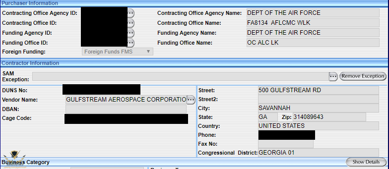وقعت صفقة في 31/1/2019 من اجل اعادة هيلكة و تجهيز معدات لمنصة Gulfstream ضمن برنامج المبيعات العسكرية الخارجية لصالح المغرب