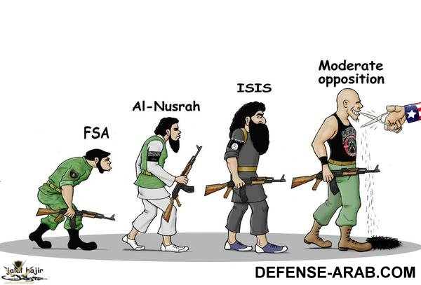 نظرية التطور عفا عنها الزمن،هو كريكاتير يلمح الى ان جميع المتشددين في سوريا تحت رعاية الأب سام بن واشنطن.