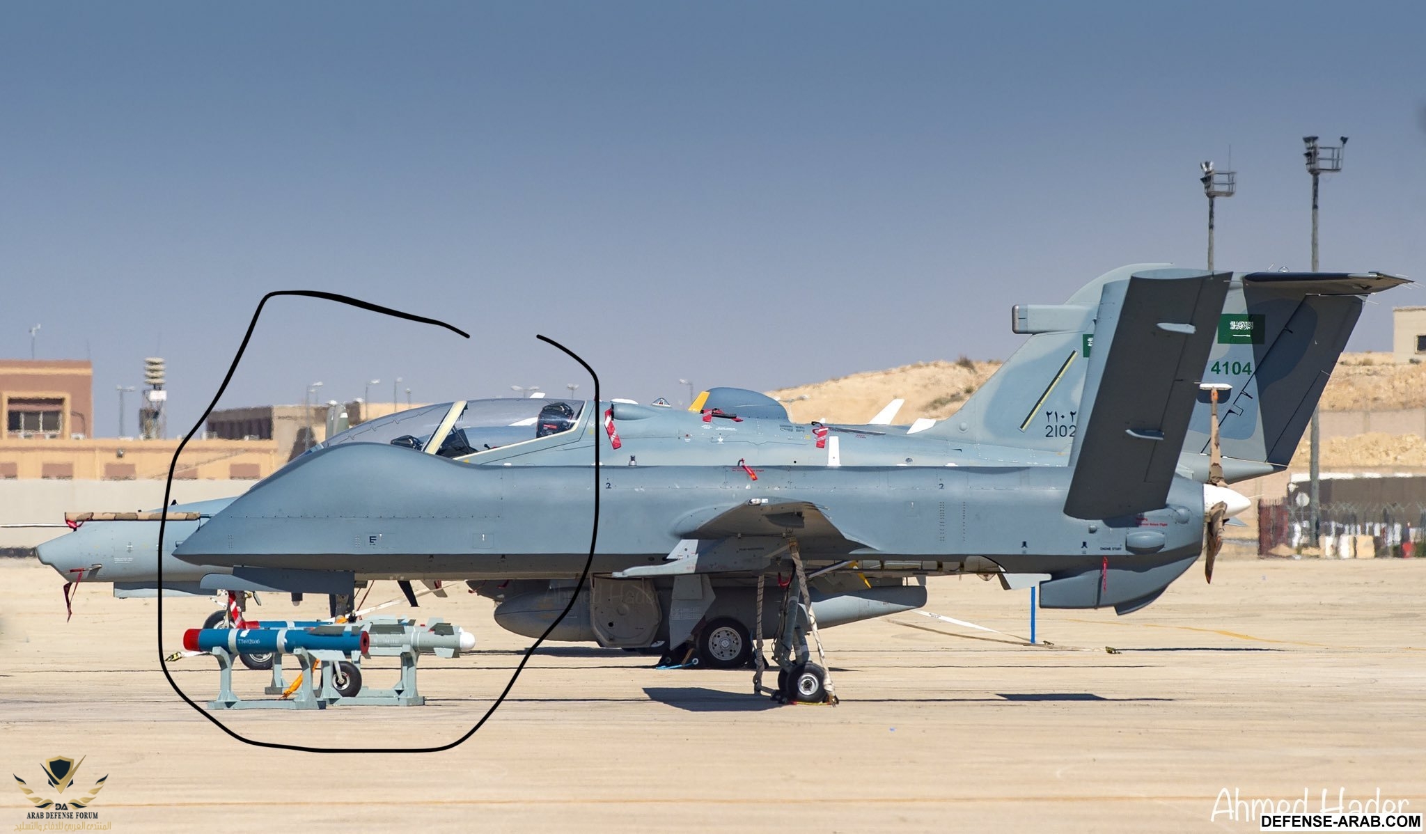 ويلاحظ في الصورتين الاختلاف في حجم غطاء المقدمه الذي يحتوي على لاقط السات في النسخه السعودية ch-4s