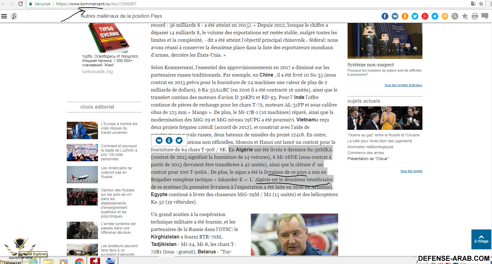 روسيا وردت للجزائر لواء كامل من صواريخ اسكندر و بعض الاسلحة الاخرى و تم توريده عام 2016