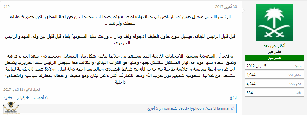 لكن نصيحه لك انت بالذات توقف عن المشاركه في الموضوع هذا وراجع ردودك في موضوع استقالة الحريري عشان ما تصور نفسك انك متناقض قدام الاعضاء