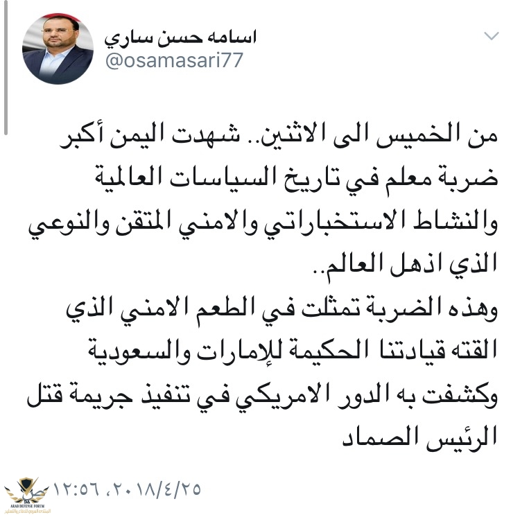 ان مقاتلة سعودية هي من نفذت الضربة الموفقة