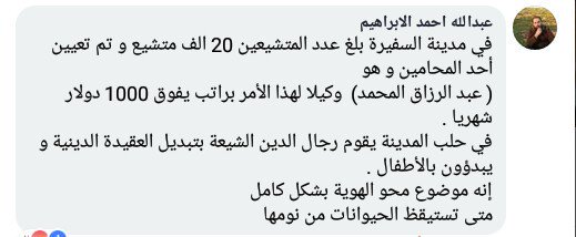 يأتي ذلك، بعد أيام من تناقل ناشطين على مواقع التواصل الاجتماعي صوراً لمعممين شيعة، يديرون حلقات تعليم في مساجد قرى وبلدات ريف حلب الشرقي، التي احتلتها قوات الأسد ومليشيات إيران مؤخراً.