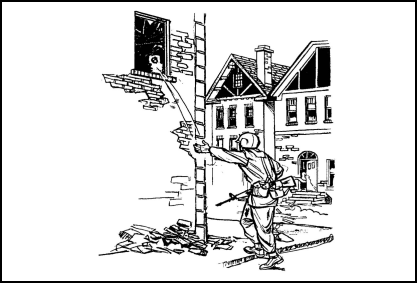 ب. يمكن استخدام وسائل مختلفة للوصول إلى الطابق العلوي للبناء أو إلى أو سطح المبنى, منها: السلالم، أنابيب الصرف الصحي، أشجار الكرم, المروحيات, يمكن للجندي أن يتسلق على أكتاف زملائه للوصول إلى مكان مرتفع كافٍ ليسحب نفسه نحو الأعلى.