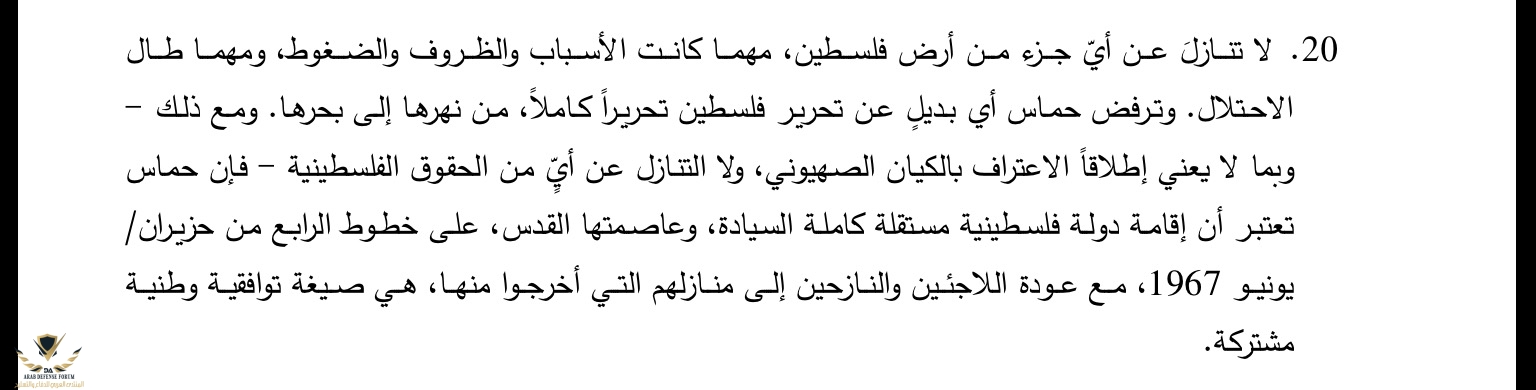 وكانت حماس عدلت في مطلع مايو (أيار) الحالي برنامجها السياسي، ووافقت على إقامة دولة فلسطينية على الأراضي التي احتلتها إسرائيل في يونيو (حزيران) من عام 1967، وشددت على الطابع السياسي غير الديني للنزاع مع إسرائيل.
