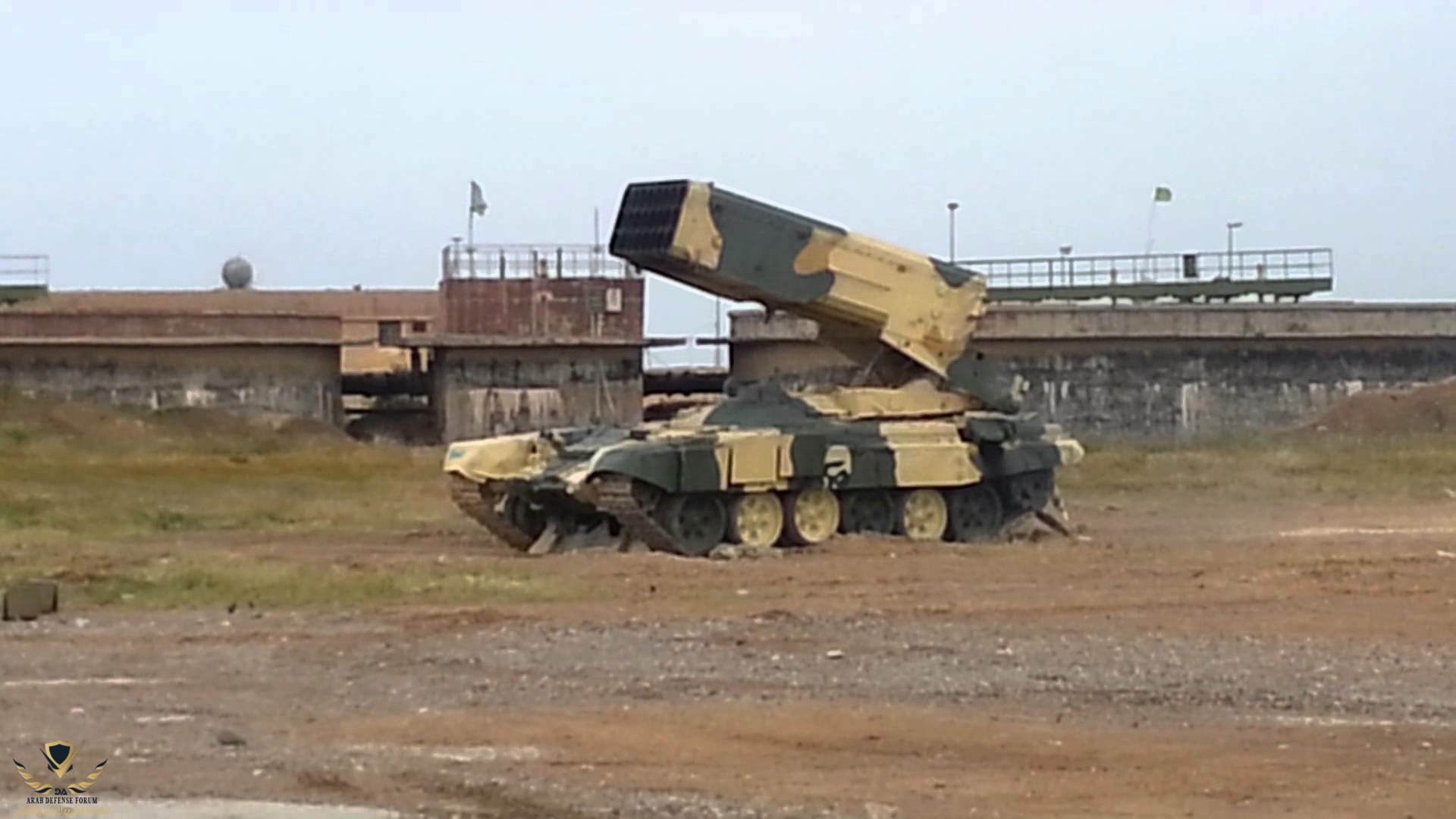 ويلاحظ الإضافات الرهيبة من ناحية التدريع حيث أضيف اليها دروع جانبية تفاعلية وشبكية على البرج ويلاحظ أيضاً التمويه المميز المشابه لتمويه دبابة T-90/S وراجمة TOS/1A قاذفة اللهب