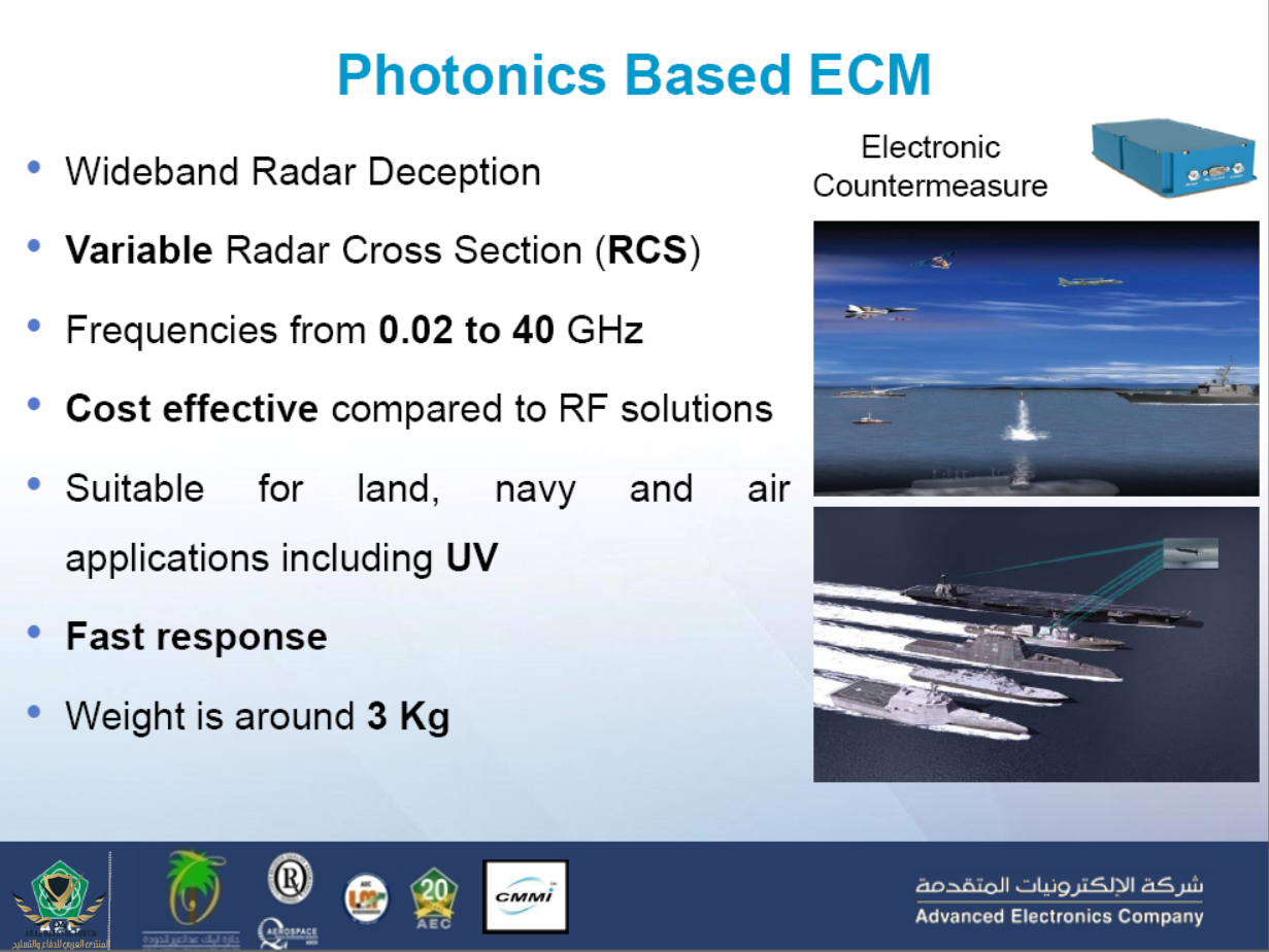 Spanish firm DAS Photonics and Saudi Arabia's Advanced Electronics Company, AEC, have announced the signing of a Memorandum of Understanding covering electronic warfare equipment, at IDEX 2015.
