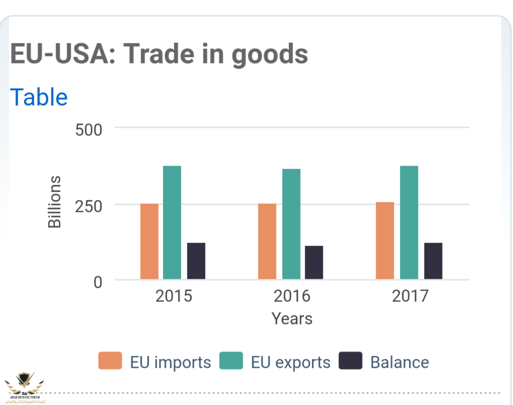 حالياً أوروبا تصدر أكثر مما تستورد، لكن إذا قامت أمريكا بوقف إستيراد مامجموعه 100 مليار دولار أو أكثر سوف يشهد الإقتصاد الأوروبي عجزا تجارياً