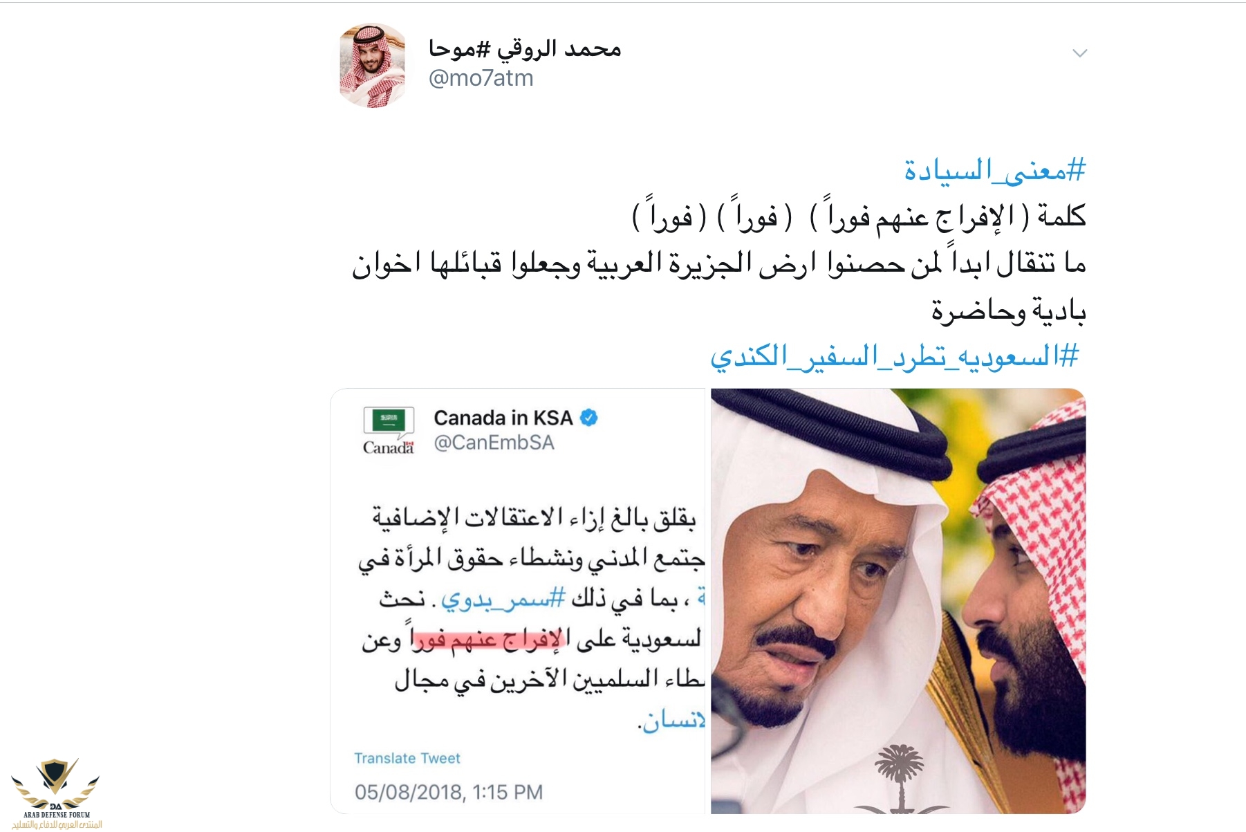 اكيد لا ولكن اشوف القرار متسرع يعني هناك الكثير من الخيارات للتعامل مع الأزمة لكن طرد السفير شوي قوية و حتى بعظ حل الأزمة ستحتاج السعودية ل damage control.