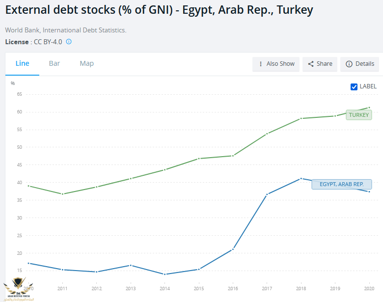 1- نسبة الدين الخارجى الى الناتج المحلى الاجمالى (فى مصر 37% و فى تركيا 61%)