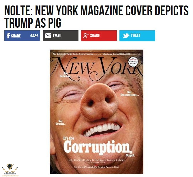 كان عندي غلاف المجلة الأمريكية التي نشرت صورة المعتوه ترامب على هيئة خنزير نجس قبيح لكن للأسف أحاول جاهدا البحث عنها في أرشيف الصور عندي ولا أجدها.